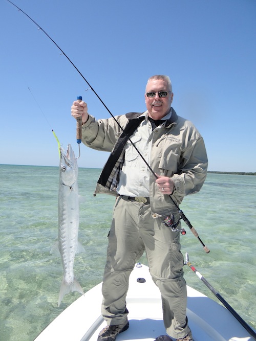 Rich did not let a stiff north breeze keep him from catching several nice barracuda on a morning half day outing.