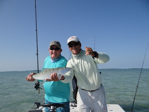 Karen proudly watched Marty catch a nice bonefish. A backcountry tarpon on light spin tackle and a permit giving him his first grand slam...