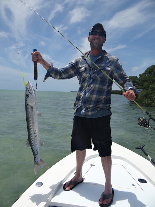 Tim started the day off with a big tarpon. Next he caught a nice bonefish. Tim topped the day off with a nice barracuda and a permit giving him a grand slam!