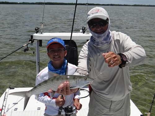 Rob proudly watched his 11 year old Benji catch 2 tarpon, 2 bonefish and a permit giving him a grand slam...