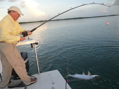 Stuart (Senior Board Member Parsons Creek Expeditions) started the day off with a tarpon. Stuart topped the day off with his first 3 permit.