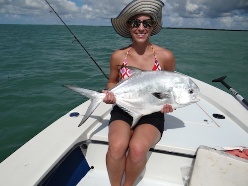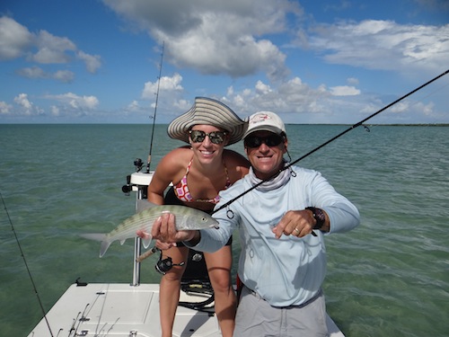 Newlyweds Mary Anne and Josh had a great day of fats fish in while honeymooning in Key West. They started the day off by teaming up to catch 3 nice tarpon. Next they teamed up to catch 5 bonefish. Mary Anne topped the day off with a nice permit giving her a Grand Slam!