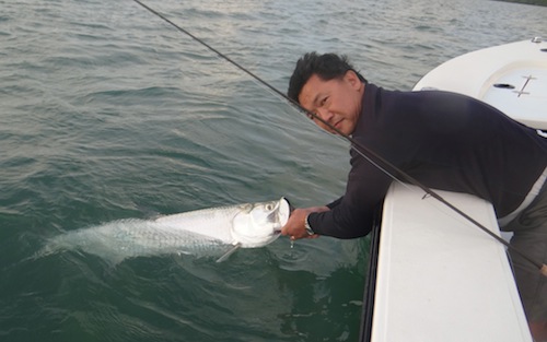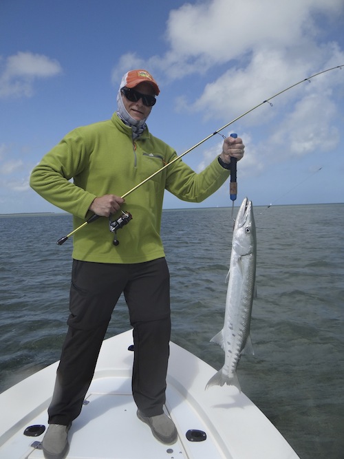 James and David teamed up to catch one tarpon on Fly out of several bites. They also caught several barracuda and a big permit on spin.