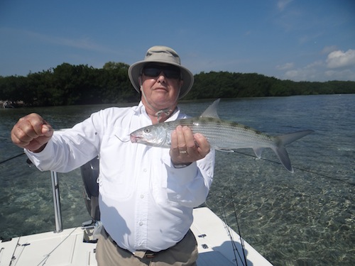 Dave started the day off with a monster 150lb tarpon. Next he caught a 30lb permit. Dave topped the day off with 5 bonfish giving him a Grand Slam!