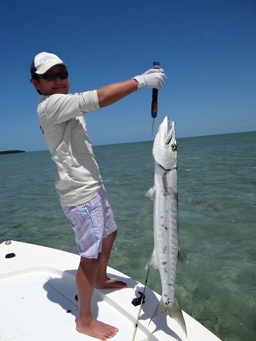 James started the day off catching 2 tarpon on Fly. Matthew topped the day off with several big barracuda.