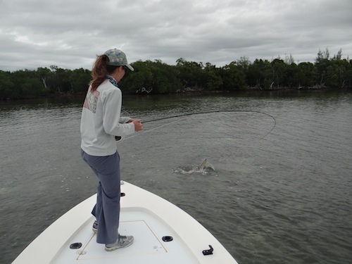Vicky proudly watched Kat catch a 50lb Lemon shark and several small barracuda on Fly.