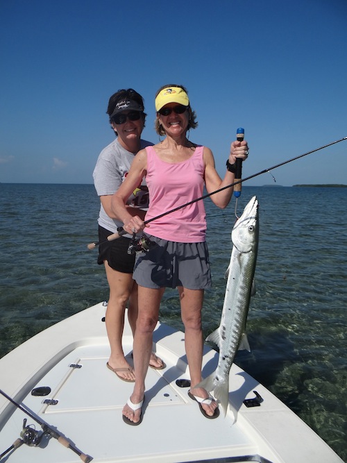 While running my new motor to break it in with my sister Susan and wife Missy we made a few brief passes down a couple banks and Susan caught a nice barracuda...